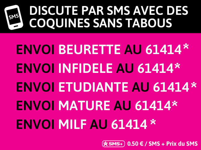 Pour discuter avec nos MILF infidèles par texto, envoi « INFIDELE » au 61414 ou clique ici pour pré-remplir le SMS.